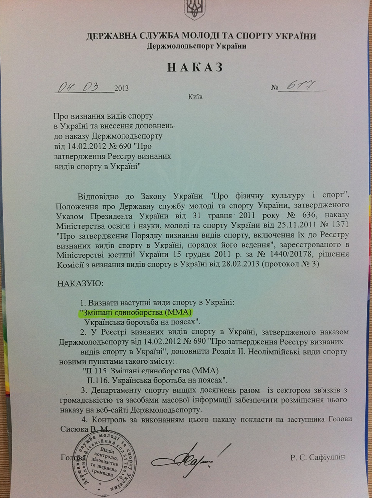 | 8 | Статут Федерації змішаних єдиноборств ММА України | Завантажити |